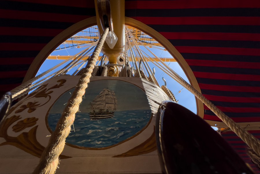 Photo taken on Aug. 27, 2022 shows the inside of the Italian Navy training ship Amerigo Vespucci in Valletta, Malta. (Photo by Jonathan Borg/Xinhua)
