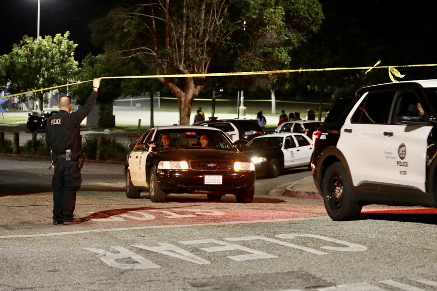 Police officers investigate after a shooting at Peck Park, Los Angeles, California, the United States, July 24, 2022. (Xinhua)