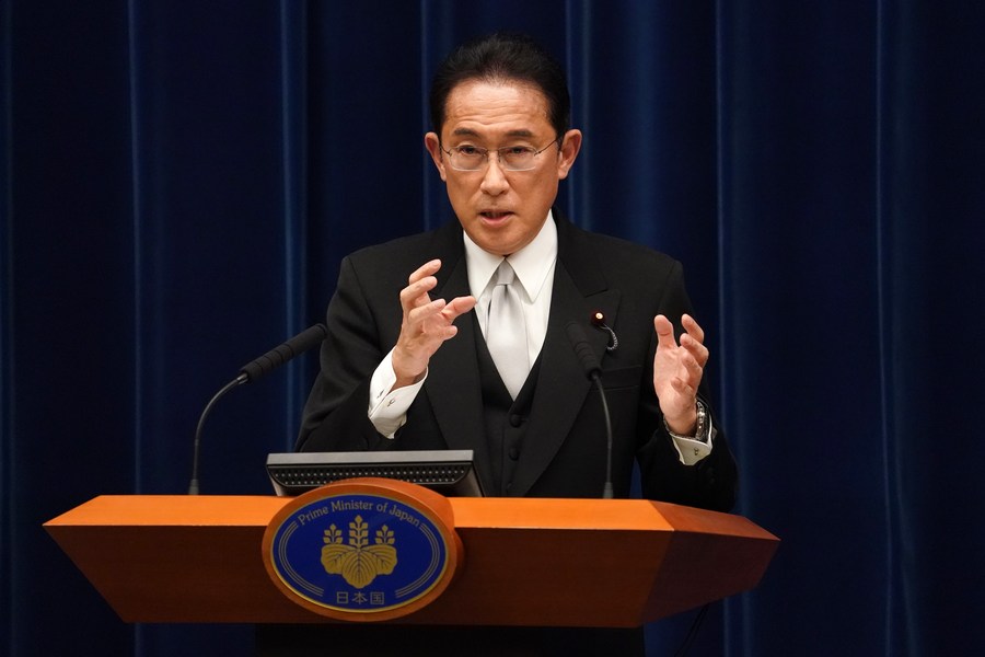 Japan's new Prime Minister Fumio Kishida speaks during a press conference at prime minister's official residence in Tokyo, Japan, on Oct. 4, 2021. (Toru Hanai/Pool via Xinhua)