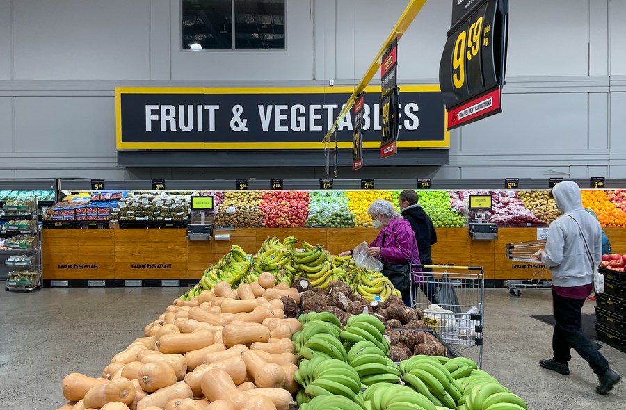People shop at a supermarket in Wellington, New Zealand, on July 18, 2022. (Xinhua/Guo Lei)