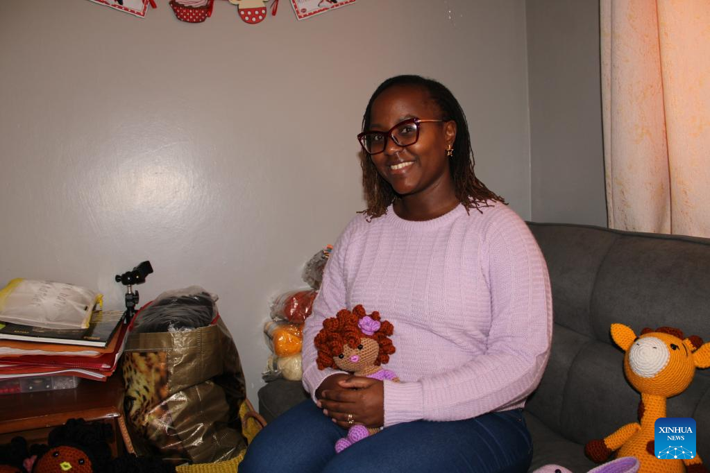 Nyawira Mafabi, a local entrepreneur, poses for photos with her African-themed dolls at her home in Nairobi, Kenya, Aug. 25, 2022. In Kenya, crocheting and knitting are typical needlework undertakings usually done listlessly by women to create dainty doilies and cheap household items such as beanies and baby shawls. However, this century-old practice appears to be staging a comeback with newer spunkier designs.(Photo by Chrispinus Omar/Xinhua)