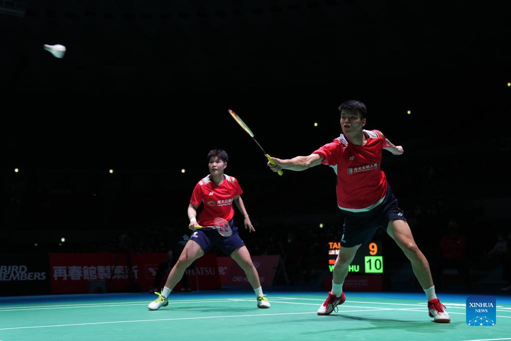 Wang Yilyu (R)/Huang Dongping of China compete during the mixed doubles quarter-final match against Tan Kian Meng/Lai Pei Jing of Malaysia at the Japan Open 2022 badminton tournament in Osaka, Japan, Sept. 2, 2022. (Xinhua/Zhang Xiaoyu)