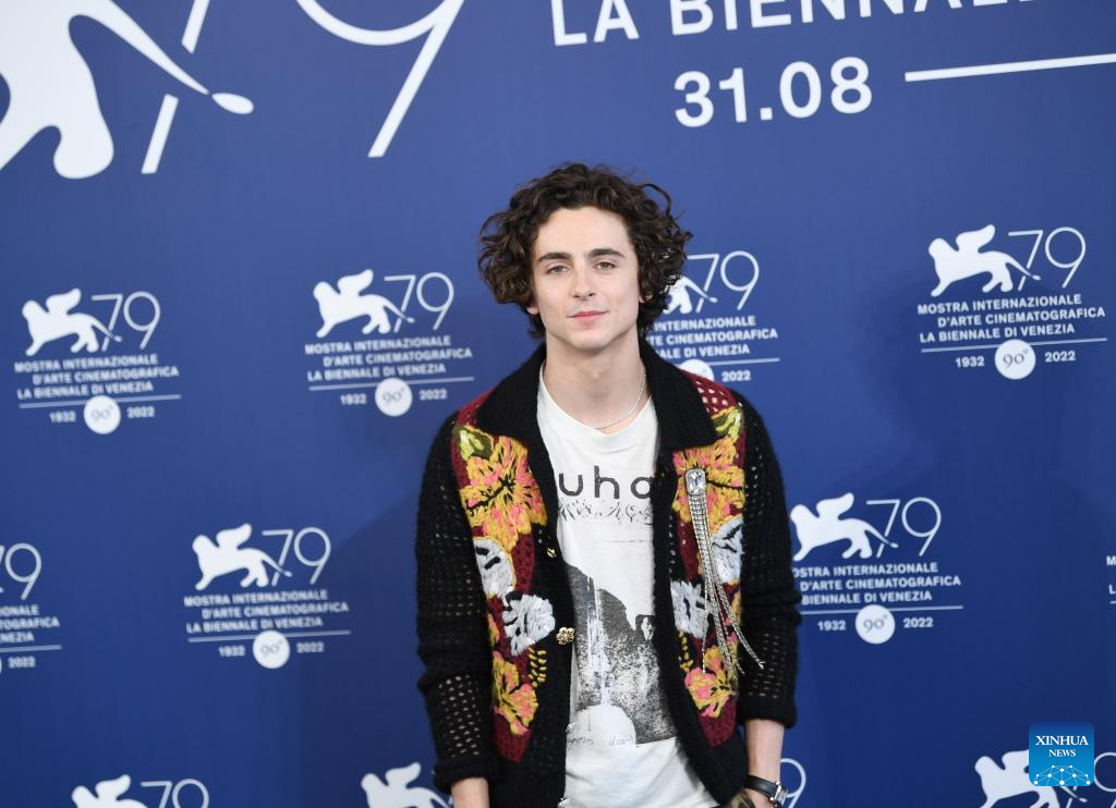 Actor Timothee Chalamet attends a photocall for the film "Bones and All" during the 79th Venice International Film Festival in Venice, Italy, Sept. 2, 2022. (Xinhua/Jin Mamengni)