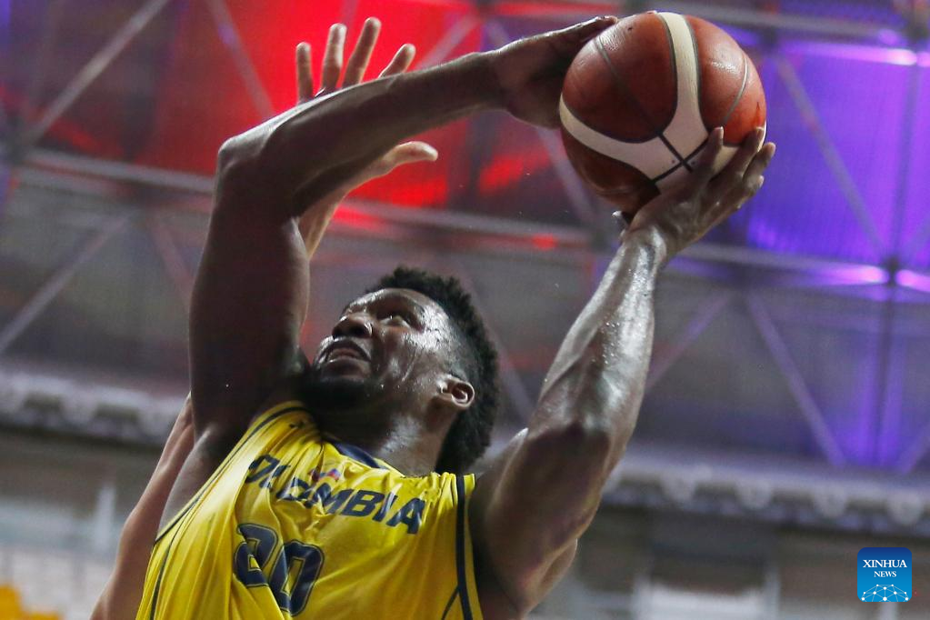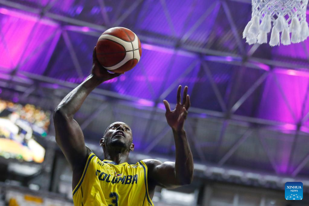 Juan Tello of Colombia dunks during a group A match between Brazil and Colombia of the FIBA Americup 2022 in Recife, Pernambuco, Brazil, Sept. 3, 2022. (Photo by Lucio Tavora/Xinhua)
