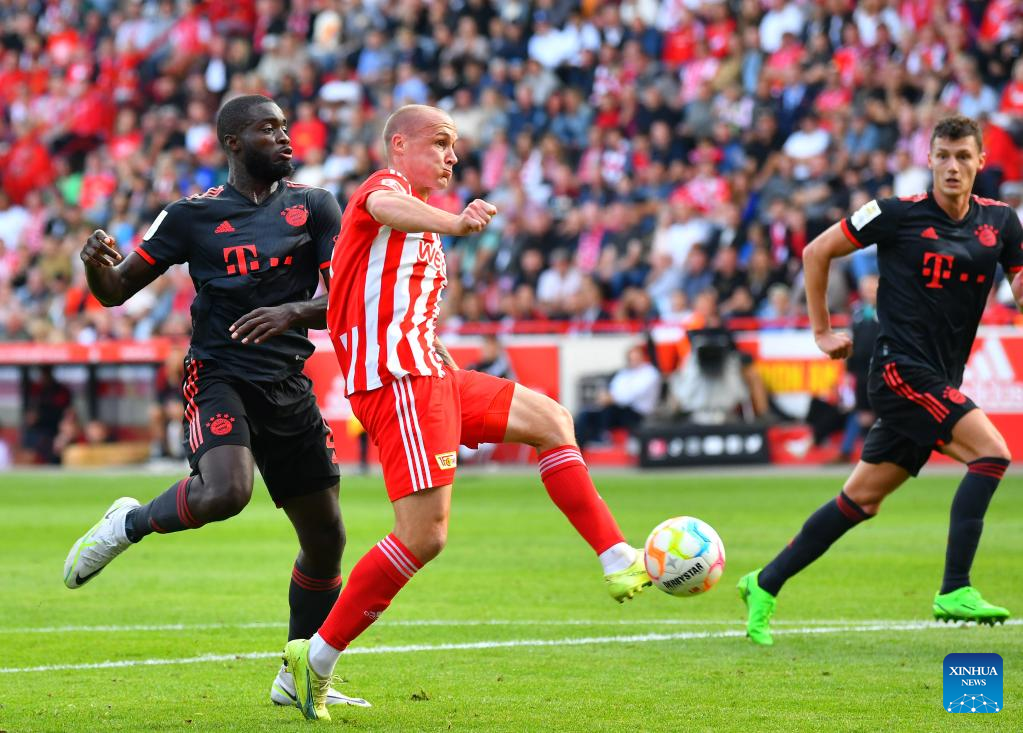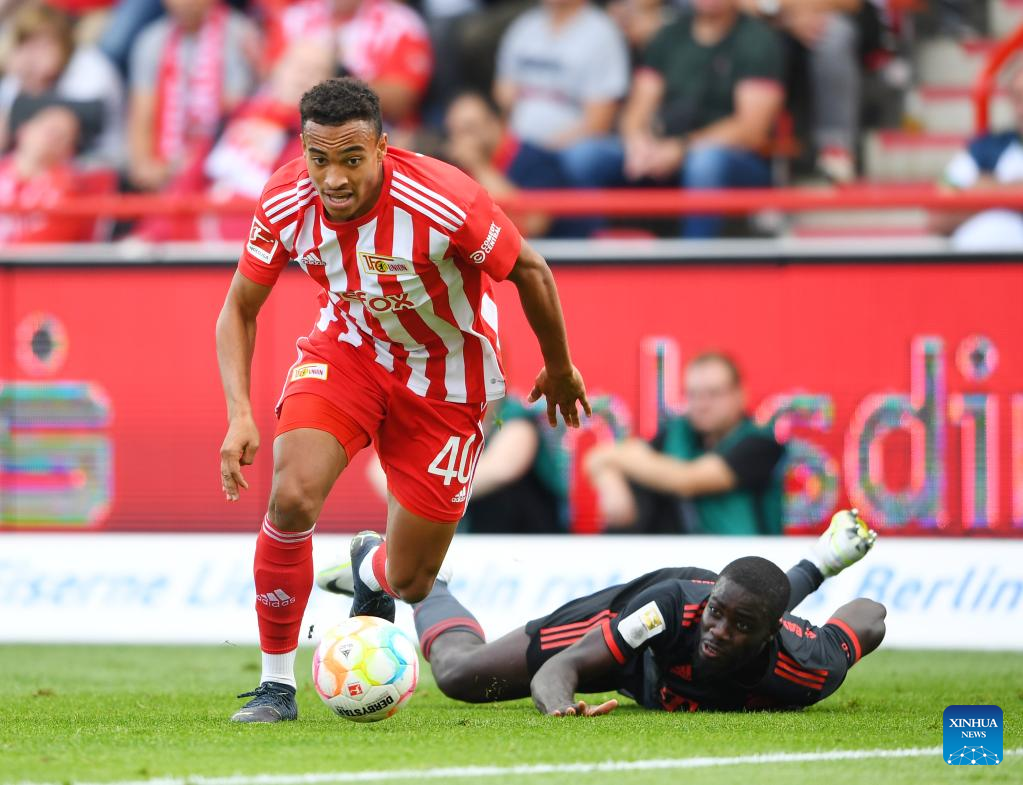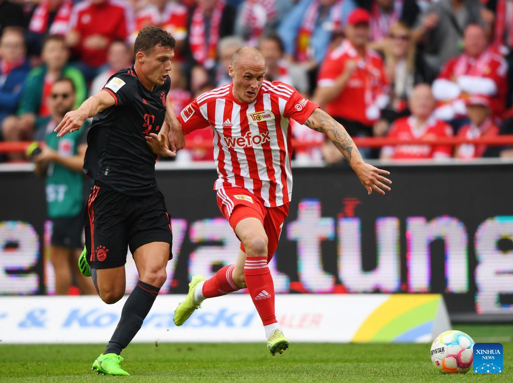 BERLIN, Sept. 3 (Xinhua) -- Reigning champions Bayern Munich dropped points for the second time in a row after courageous Union Berlin secured a 1-1 stalemate on home soil in the fifth round of the Bundesliga on Saturday.