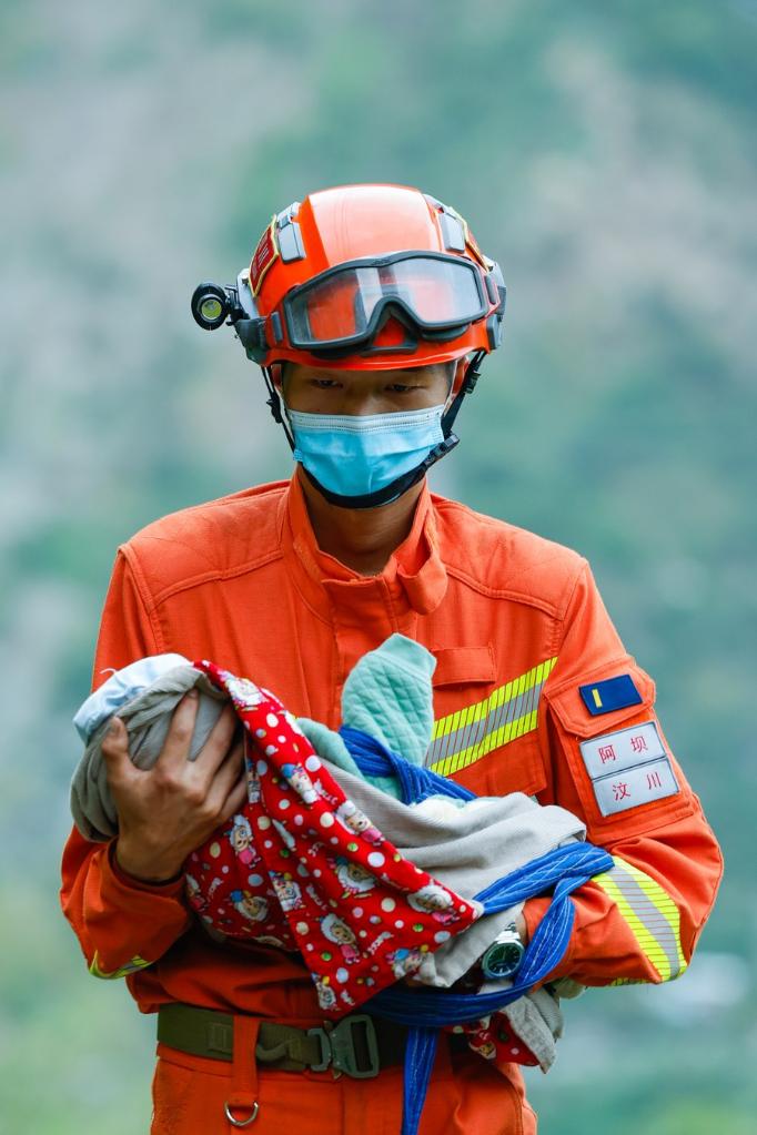 Rescuer Zhang Zili transfers a 2-month-old baby from Wandong Village of Detuo Town in Luding County, southwest China's Sichuan Province, Sept. 6, 2022. A total of 74 people have been killed and 26 remain missing after a 6.8-magnitude earthquake jolted Luding County in southwest China's Sichuan Province on Monday, local authorities said Wednesday. (Xinhua/Shen Bohan)