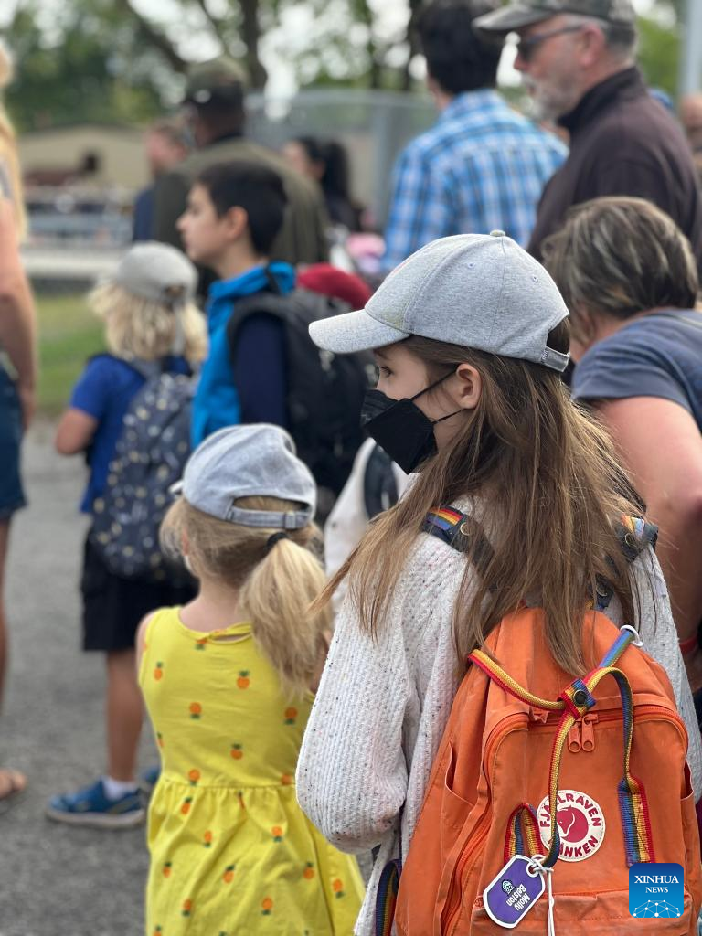 Students line up to enter a school in Ottawa, Canada, on Sept. 6, 2022. Most students in Ottawa returned to school on Tuesday to start a new school year. (Photo by Min Chen/Xinhua)