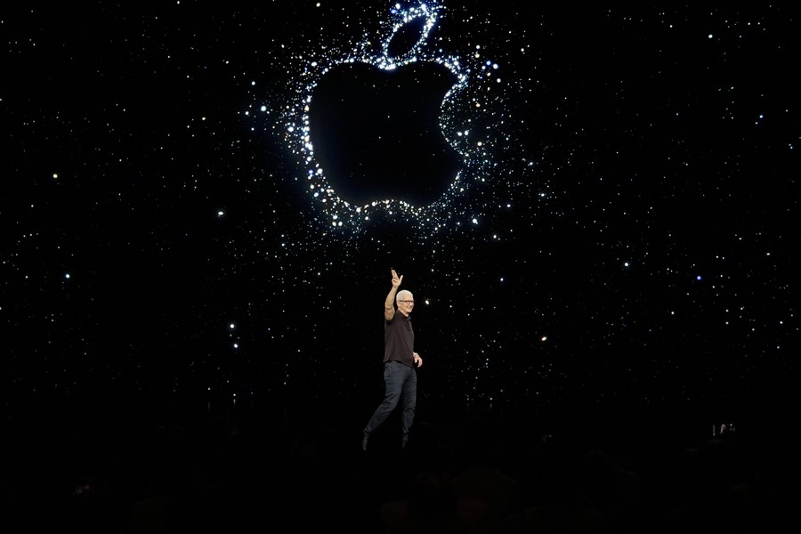 Apple CEO Tim Cook attends a product launch event in San Francisco Bay Area, California, the United States, Sept. 7, 2022. (Xinhua)