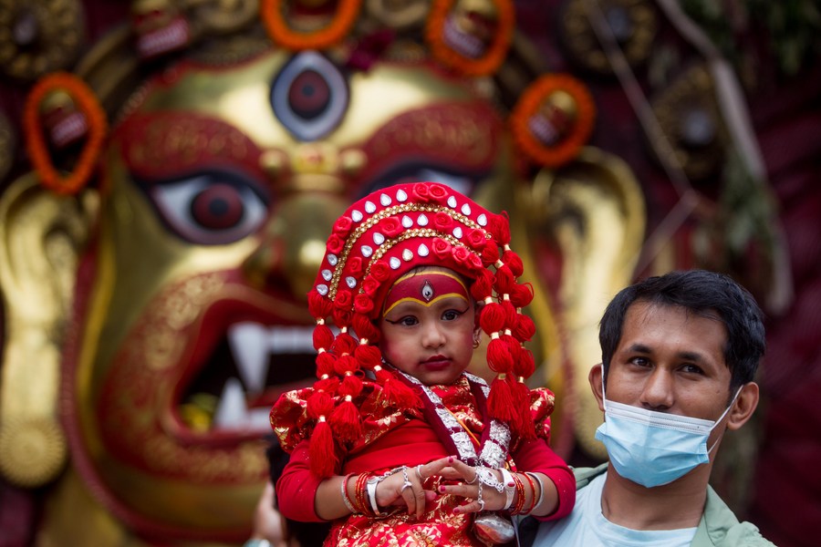 KATHMANDU, Sept. 9 (Xinhua) -- Nepal held a mass Kumari Puja worship for better health and prosperity during the Indra Jatra Festival here on Thursday, attracting many girls aged below nine to participate.