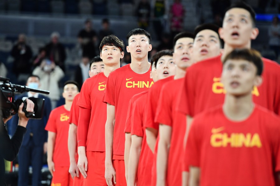Players of China line up before their Group B match against Chinese Taipei in Basketball World Cup Asian Qualifiers in Melbourne, Australia, July 1, 2022. (Photo by Bai Xue/Xinhua)