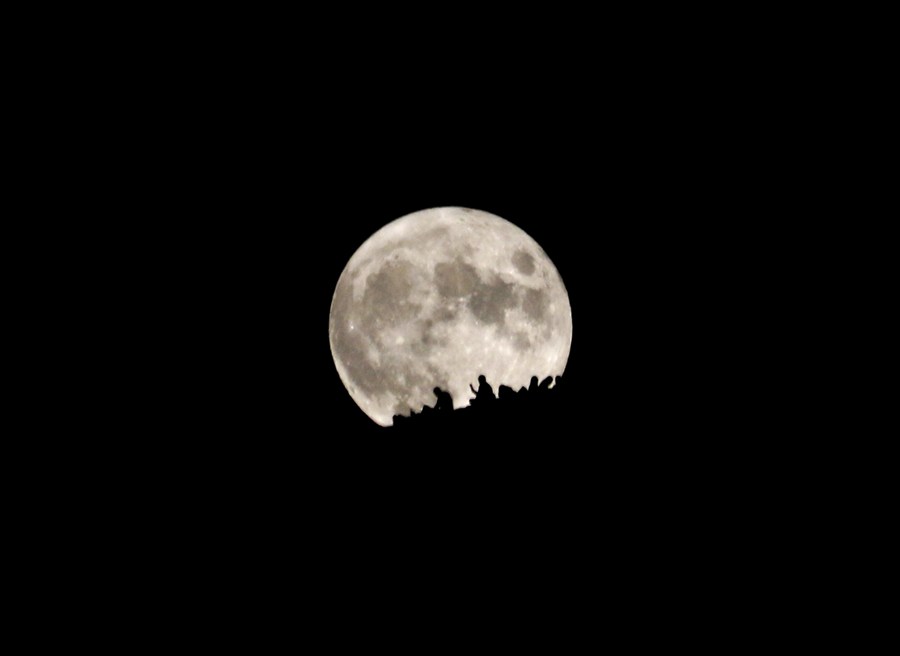 A full moon rises above the Langshan National Forest Park in Nantong, east China's Jiangsu Province, Sept. 10, 2022. (Photo by Xu Congjun/Xinhua)