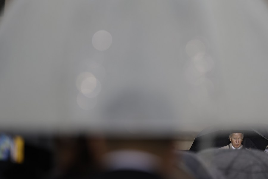 U.S. President Joe Biden participates in a ceremony marking the 21st anniversary of the 9/11 attacks at the Pentagon in Arlington, Virginia, the United States, on Sept. 11, 2022. (Photo by Ting Shen/Xinhua)