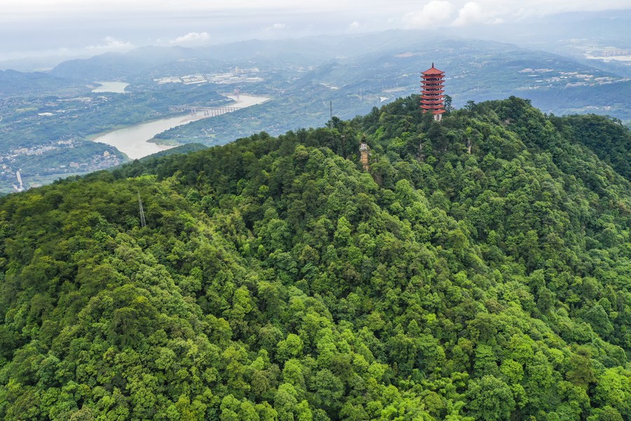Aerial photo taken on June 4, 2022 shows a view of the Jinyun Mountain in southwest China's Chongqing. (Xinhua/Wang Quanchao)