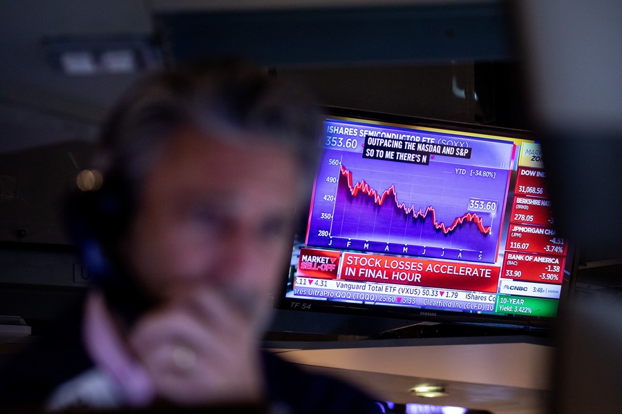 A trader works at the New York Stock Exchange (NYSE) in New York, the United States, Sept. 13, 2022. (Photo by Michael Nagle/Xinhua)