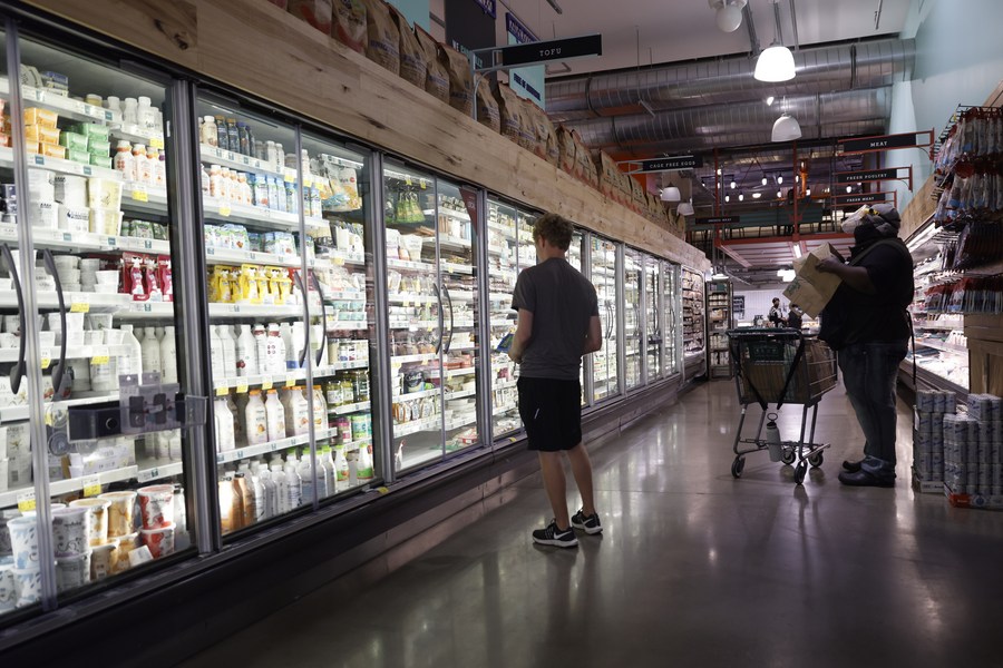 People shop at a local supermarket in Washington, D.C., the United States, Sept. 13, 2022. (Photo by Ting Shen/Xinhua)