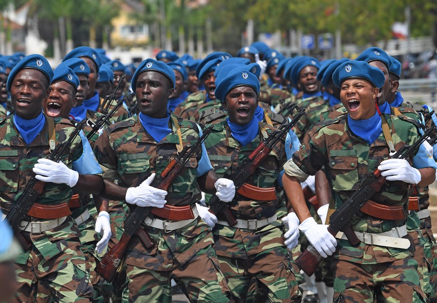 Troops are reviewed during the presidential inauguration ceremony of Joao Lourenco in Luanda, Angola, on Sept. 15, 2022. (Xinhua/Chen Cheng)