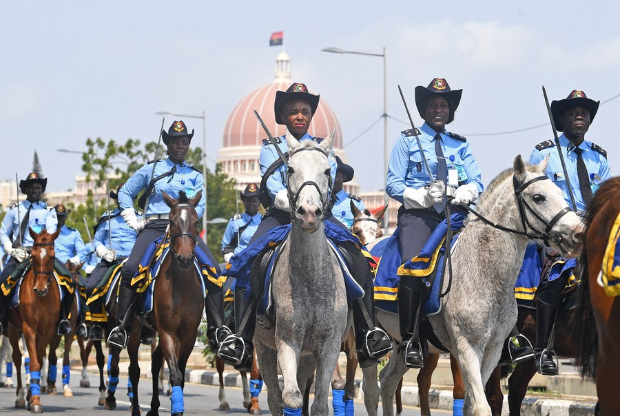 Members of the cavalry are reviewed during the presidential inauguration ceremony of Joao Lourenco in Luanda, Angola, on Sept. 15, 2022. (Xinhua/Chen Cheng)