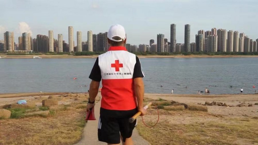 "If I saw someone in danger when I was swimming, I would certainly try to rescue him. But after all, I'm not professional," Wang said. He and his companions met the Jiangxi Red Cross Water Rescue Team which is always on duty at the riverside to prevent drowning.