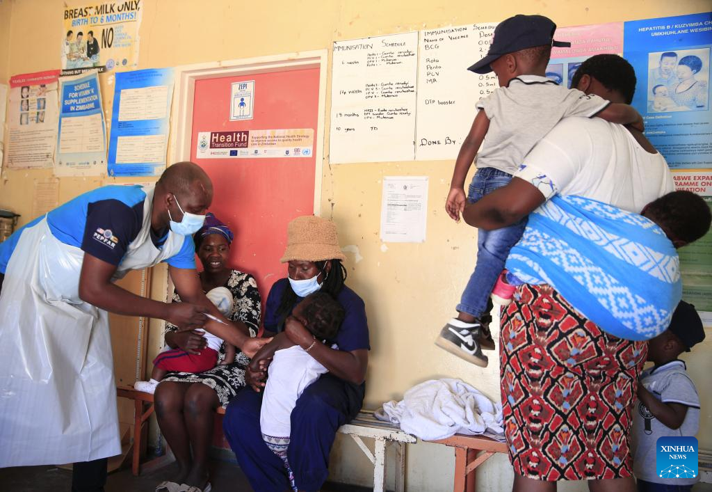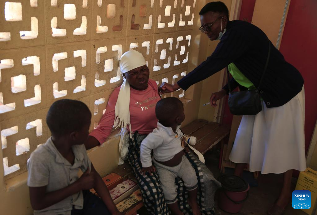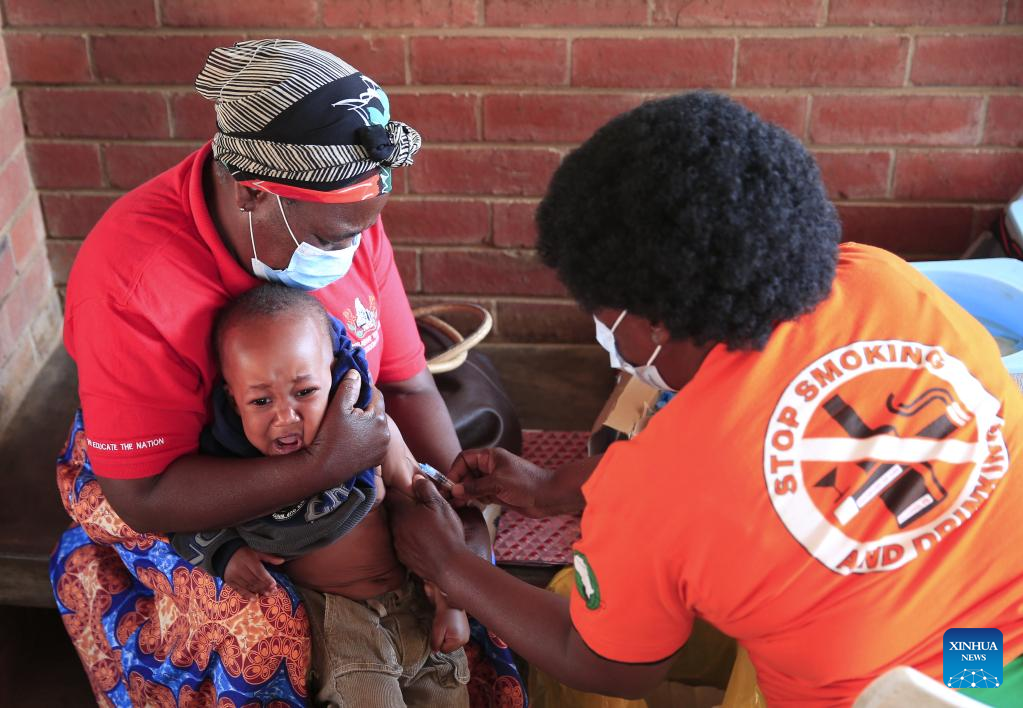 A nurse immunizes a child against measles at a clinic in Chitungwiza, Zimbabwe, on Sept. 16, 2022. More than 6,500 cases of measles have been reported in Zimbabwe since April this year. (Photo by Shaun Jusa/Xinhua)