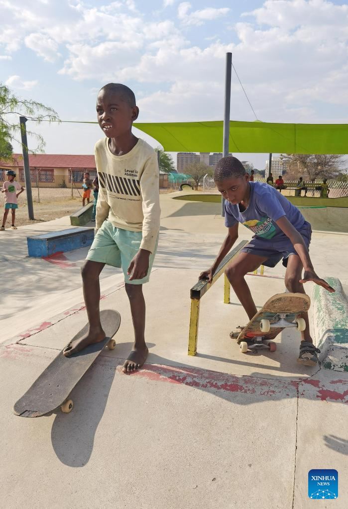 Children practice skating at the skate park in Windhoek, Namibia, Sept. 17, 2022. Skating is empowering children living with disabilities to realize their full potential as well as improve inclusion while helping to reduce stigma and increase self-confidence in adolescents living in Namibia's capital Windhoek.