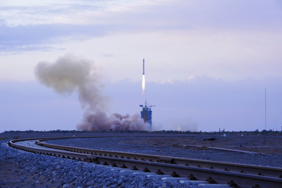 A Long March-2D carrier rocket carrying the Yunhai-1 03 satellite blasts off from the Jiuquan Satellite Launch Center in northwest China, Sept. 21, 2022. The satellite was launched at 7:15 a.m. (2315 GMT Tuesday) and has entered the planned orbit successfully. (Photo by Wang Heng/Xinhua)