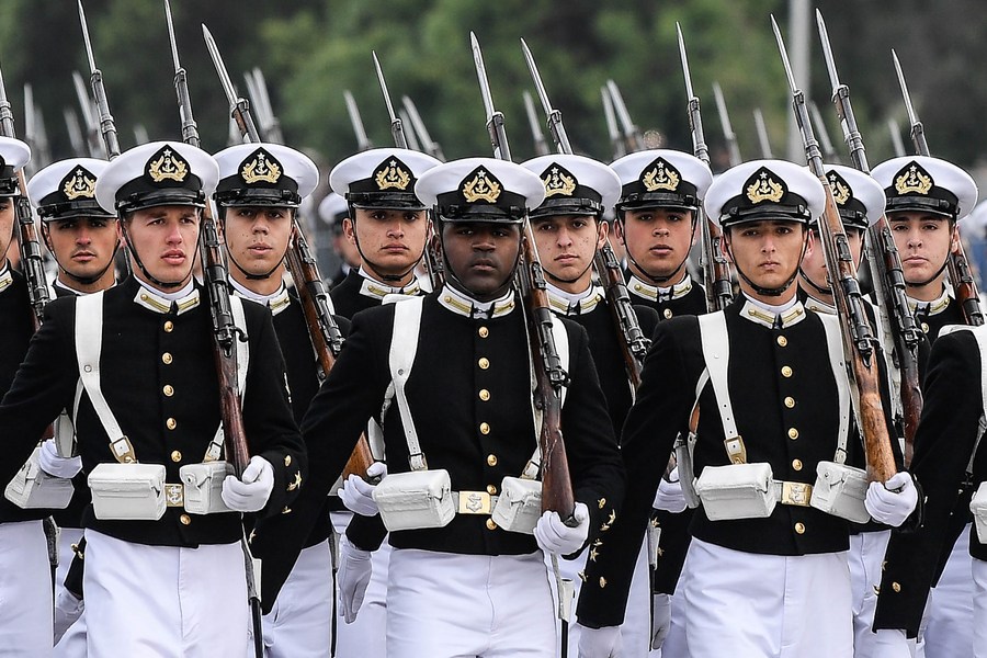 Soldiers take part in an annual military parade to celebrate the Day of the Glories of the Army at the O'Higgins park, in Santiago, Chile, on Sept. 19, 2022. (Photo by Jorge Villegas/Xinhua)■