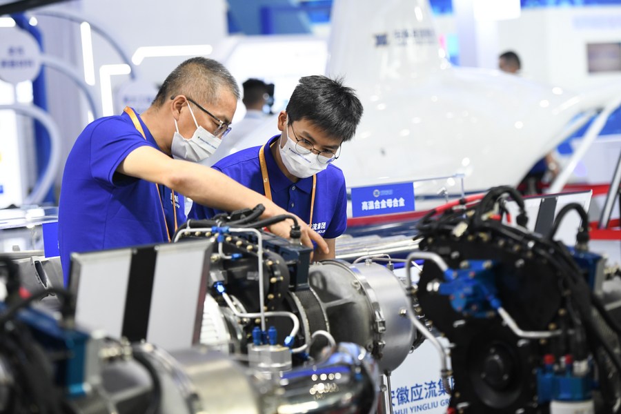 Exhibitors are seen at the 2022 World Manufacturing Convention in Hefei, east China's Anhui Province, Sept. 20, 2022. (Xinhua/Zhang Duan)