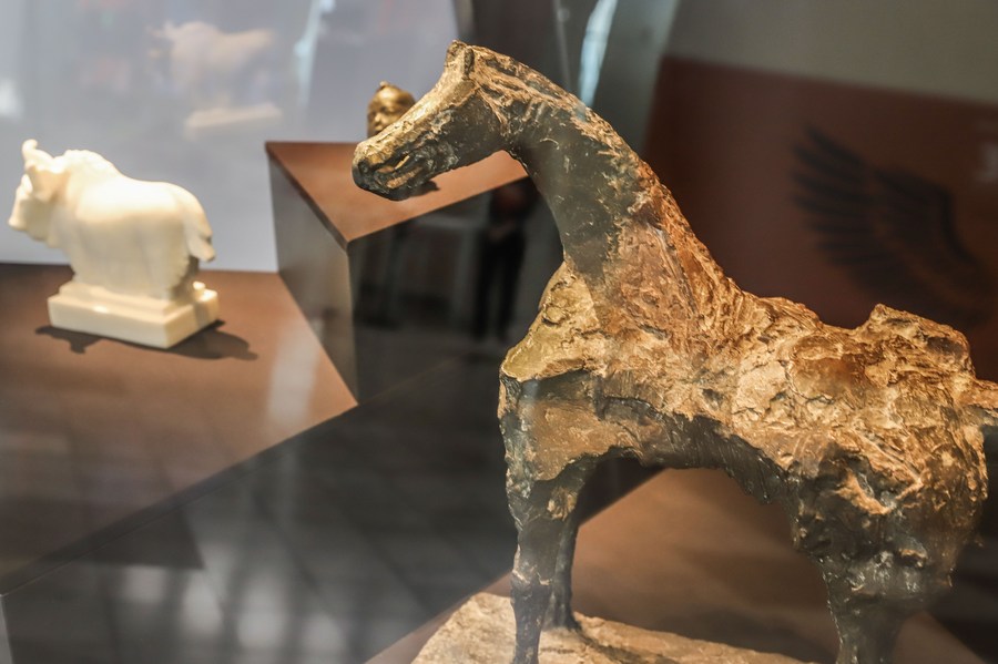 Photo taken on Dec. 9, 2021, shows modern Chinese sculptures on display at the National Museum of Australia in Canberra, Australia. (Photo by Liu Changchang/Xinhua)