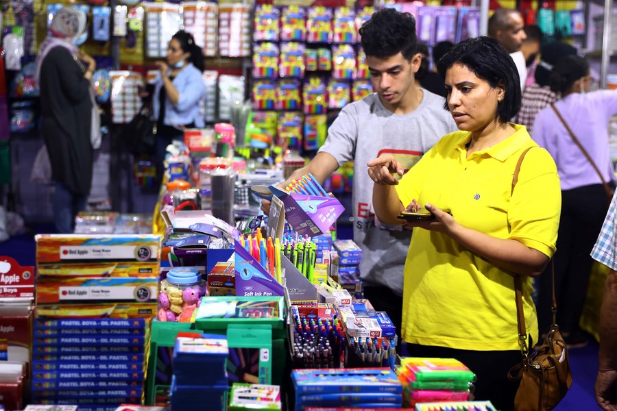 People shop for stationery at a fair in Cairo, Egypt, on Sept. 18, 2021. (Xinhua/Ahmed Gomaa)