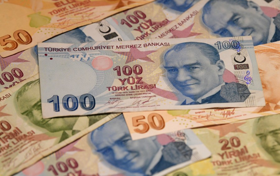 Photo taken on June 9, 2022 shows Turkish lira banknotes in Istanbul, Turkey. (Xinhua/Shadati)