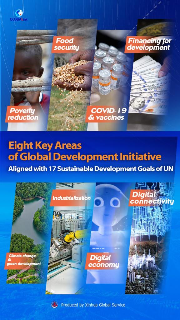 China is pushing for the translation of the initiative from concept to reality, with concrete results from cooperation projects in eight key areas: poverty alleviation, food security, COVID-19 response and vaccines, financing for development, climate change and green development, industrialization, digital economy, and connectivity.
