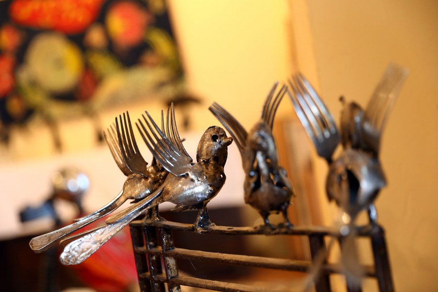 "The same pieces of scrap metal, which are negatively viewed if thrown in the street, can be used in creating a statue that beautifies the same street," the scrap metal sculptor told Xinhua. ■