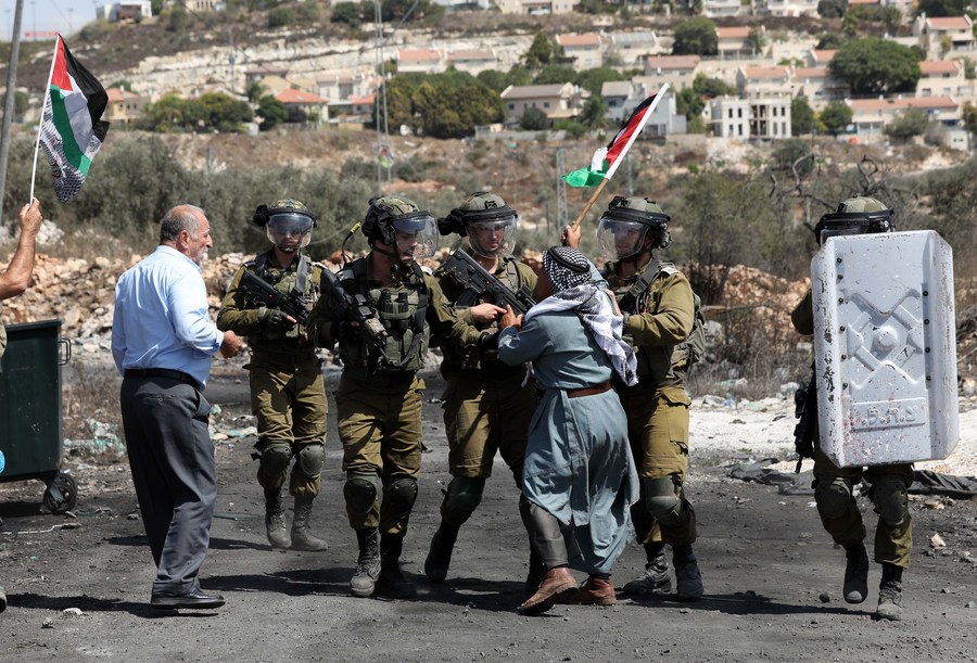 RAMALLAH, Sept. 23 (Xinhua) -- Dozens of Palestinian protesters were injured during clashes with Israeli soldiers in several West Bank cities and villages on Friday, Palestinian medics and eyewitnesses said.