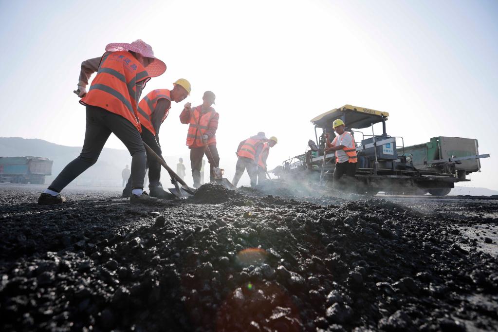 Constructors work in the Zunhua-Qinhuangdao section of the Beijing-Qinhuangdao Expressway in Zunhua City, north China's Hebei Province, Sept. 25, 2022. (Photo by Liu Mancang/Xinhua)