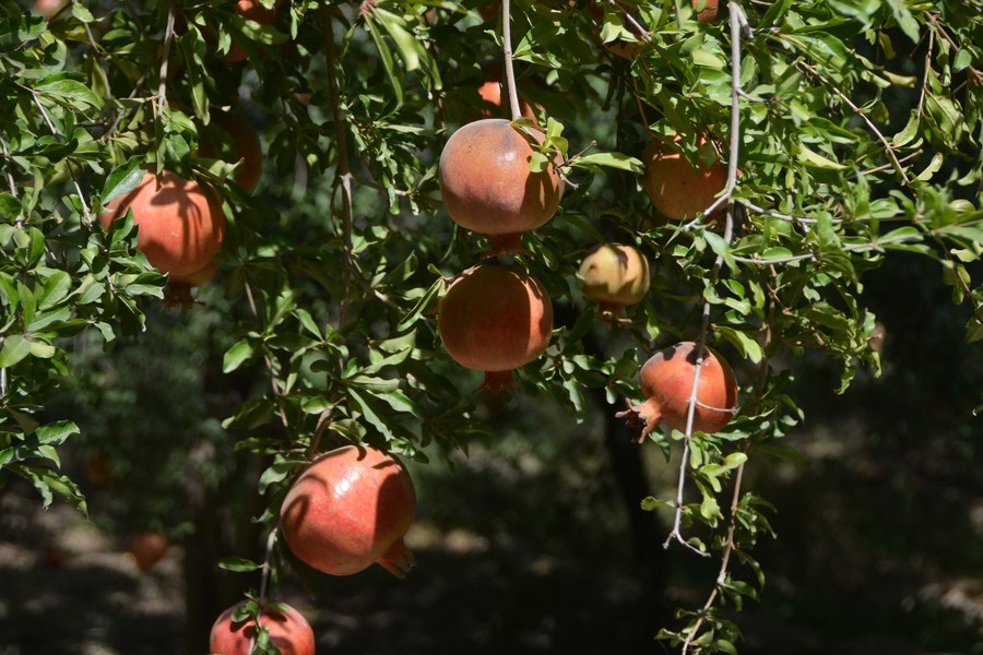 Photo taken on Sept. 24, 2022, shows pomegranates in an orchard in Kandahar province, Afghanistan. (Photo by Sanaullah Seiam/Xinhua)■