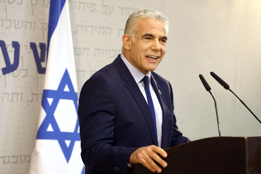 RAMALLAH, Sept. 27 (Xinhua) -- Israeli Prime Minister Yair Lapid made a high-profile speech at the United Nations General Assembly (UNGA) on Sept. 22, during which he stressed his support for the two-state solution to the Israel-Palestine conflict.