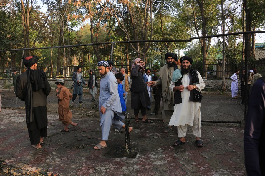 People gather at the site of a blast in Kabul, Afghanistan on Sept. 23, 2022. (Photo by Saifurahman Safi/Xinhua)