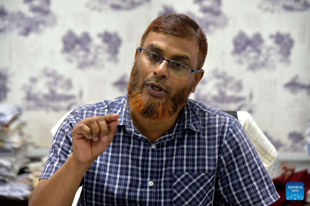 Md Afzal Hossain, the head of the Chinese Department at Dhaka University, speaks during an interview with Xinhua at his office in Dhaka, Bangladesh, Aug. 17, 2022. (Xinhua)