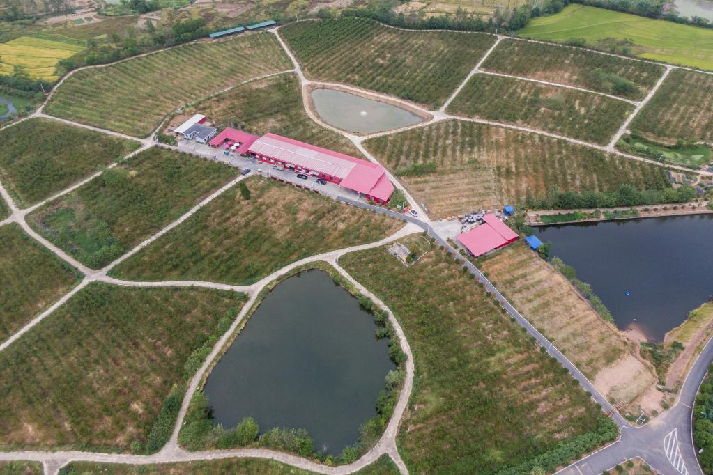 Aerial photo taken on Sept. 22, 2022 shows a peach planting base in Xinzhou district of Wuhan, central China's Hubei Province. (Xinhua/Wu Zhizun)