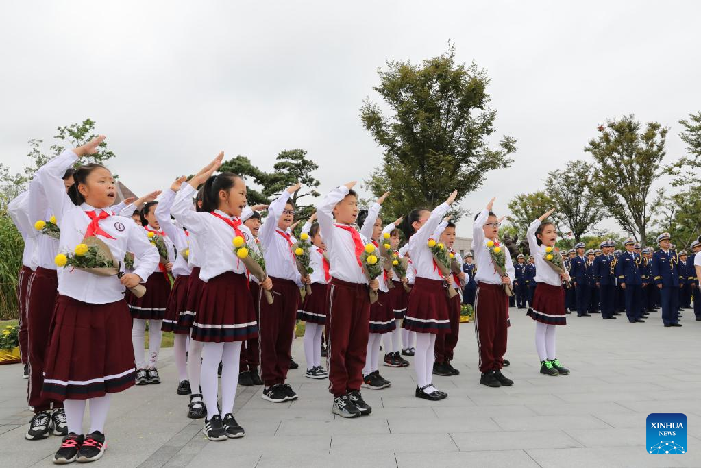 A commemorative event is held at Songjiang Martyrs' Cemetery in east China's Shanghai, Sept. 30, 2022.