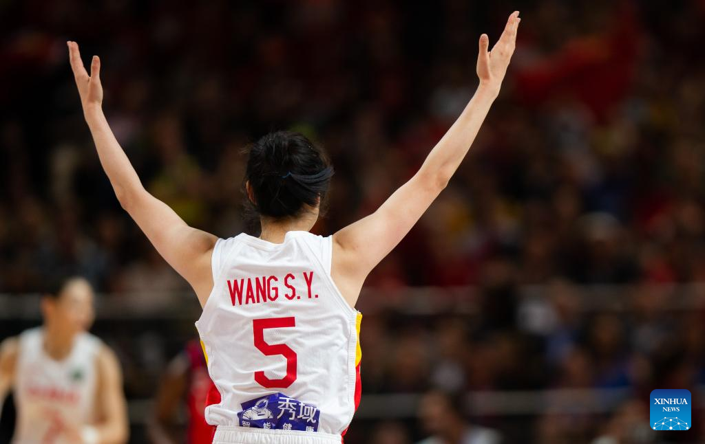 Wang Siyu of China gestures during the final against the United States at the FIBA Women's Basketball World Cup 2022 in Sydney, Australia, Oct. 1, 2022. (Photo by Hu Jingchen/Xinhua)