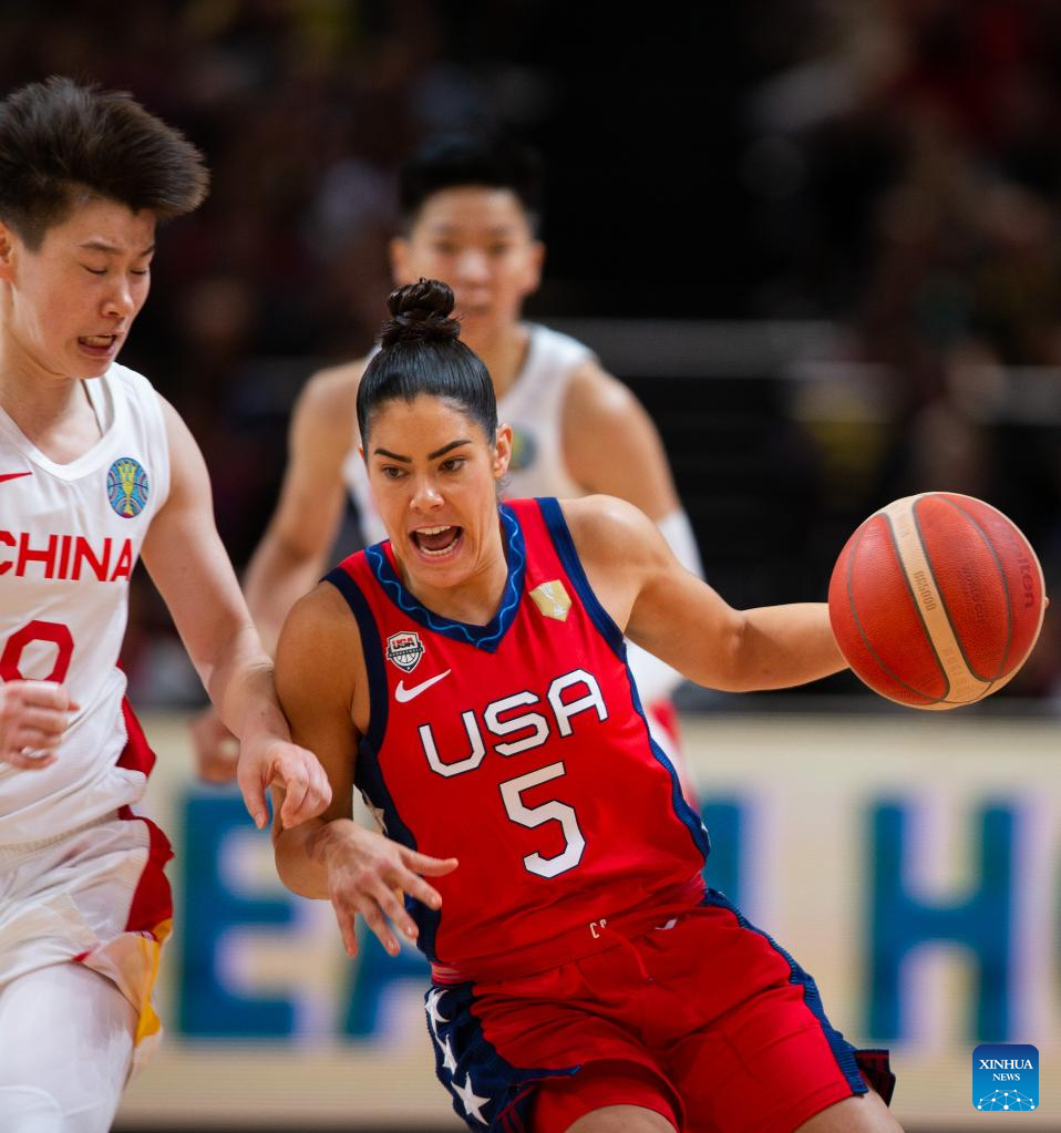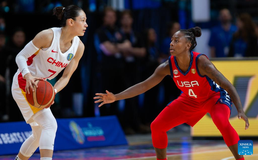 Yang Liwei (L) of China vies with Jewell Loyd of the United States during the final at the FIBA Women's Basketball World Cup 2022 in Sydney, Australia, Oct. 1, 2022. (Photo by Hu Jingchen/Xinhua)