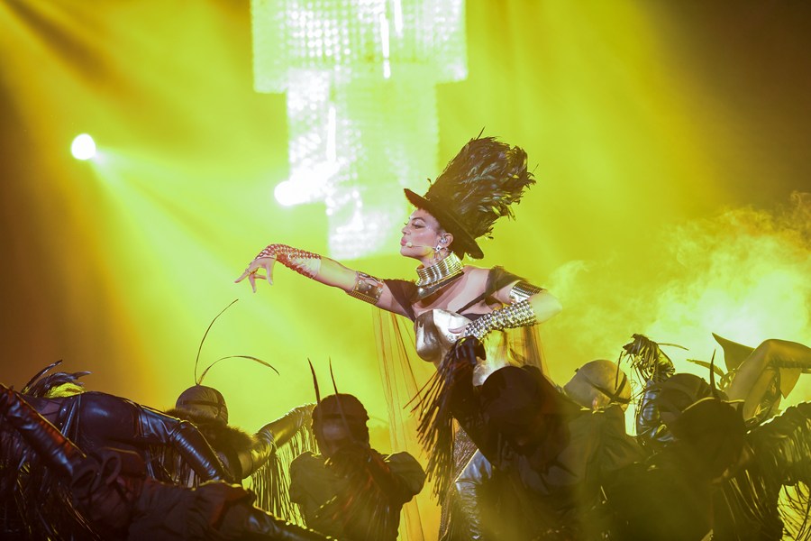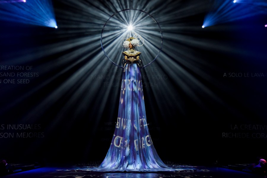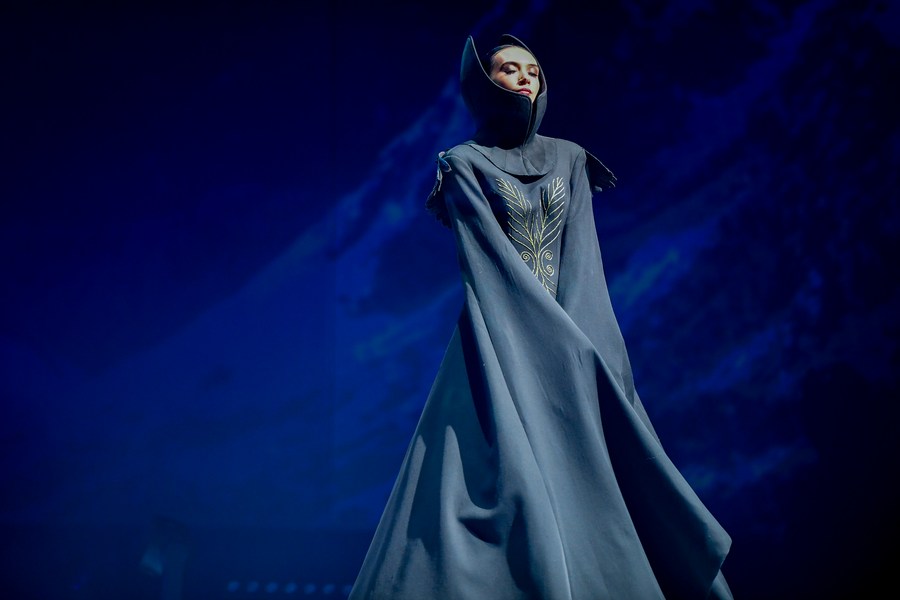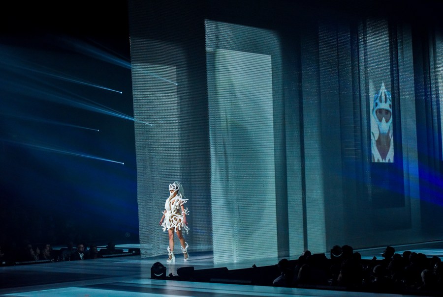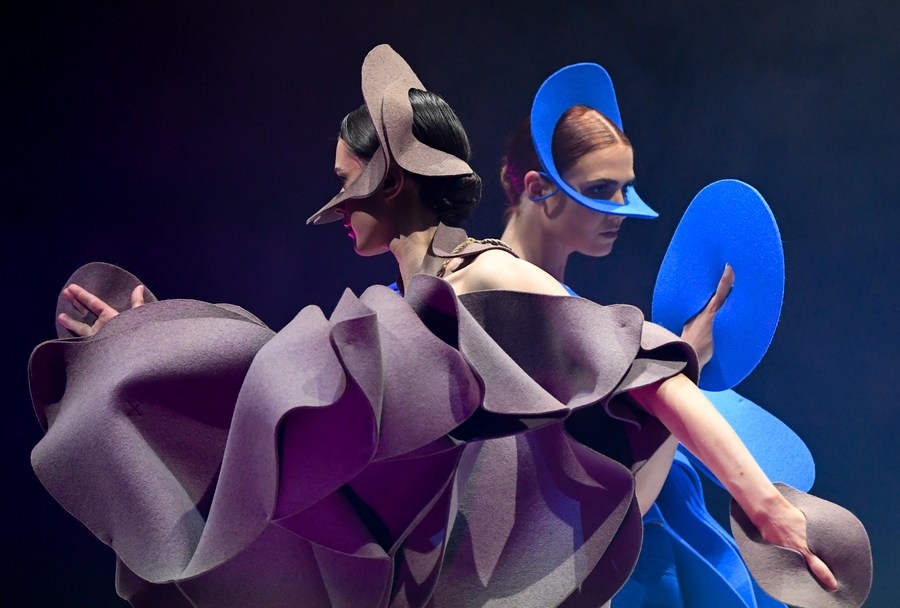 Models display designs at the World of WearableArt show in Wellington, New Zealand, on Sept. 29, 2022. (Xinhua/Guo Lei)