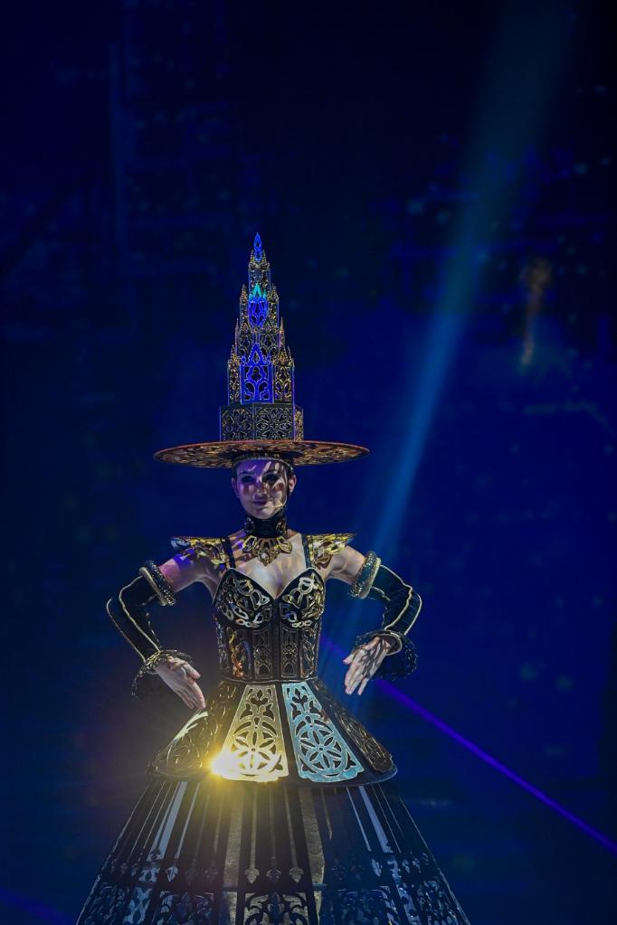 Models display designs at the World of WearableArt show in Wellington, New Zealand, on Sept. 29, 2022. (Xinhua/Guo Lei) ■