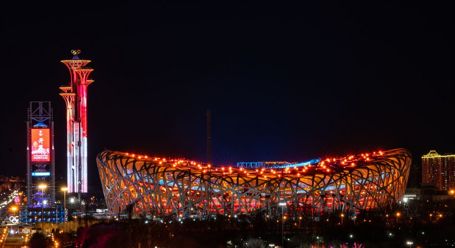 Photo taken on Feb. 4, 2022 shows the National Stadium during the opening ceremony of the Beijing 2022 Olympic Winter Games. (Xinhua/Cai Yang)