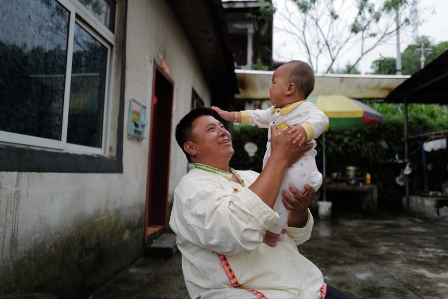 Tenzin Gyatso plays with his granddaughter in Medog County, southwest China's Tibet Autonomous Region, June 10, 2022. (Xinhua/Liu Ying)