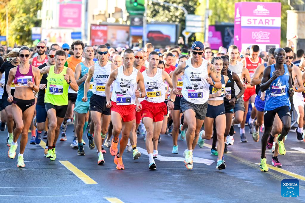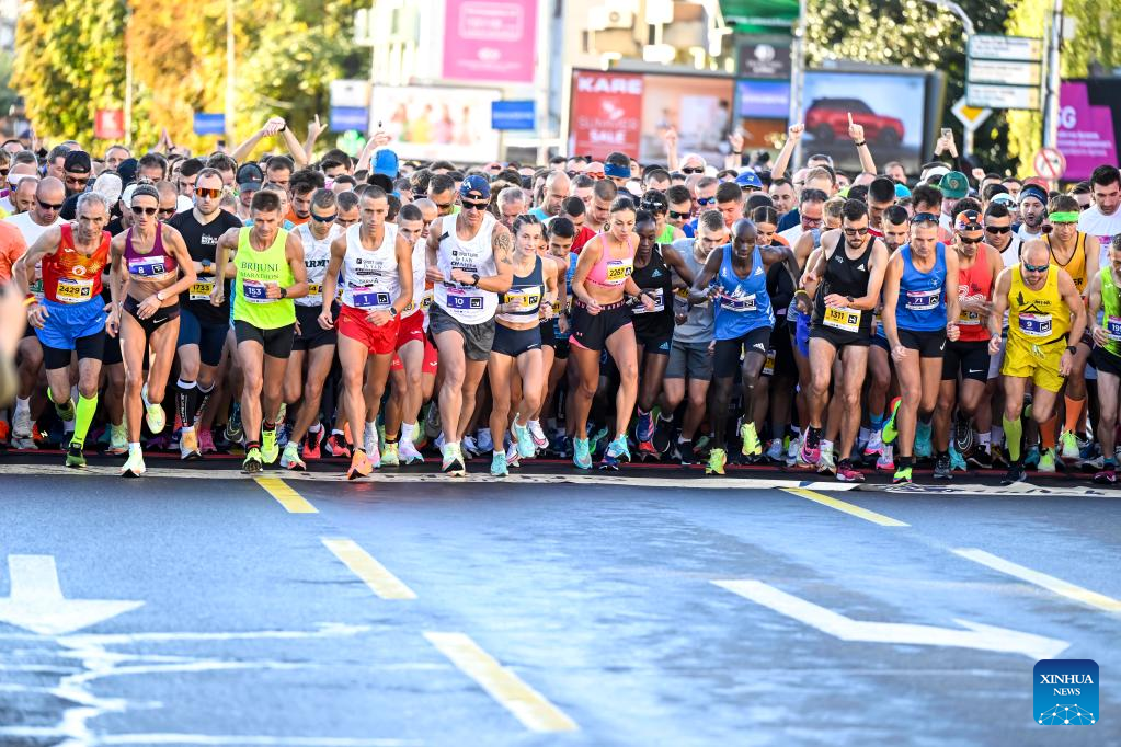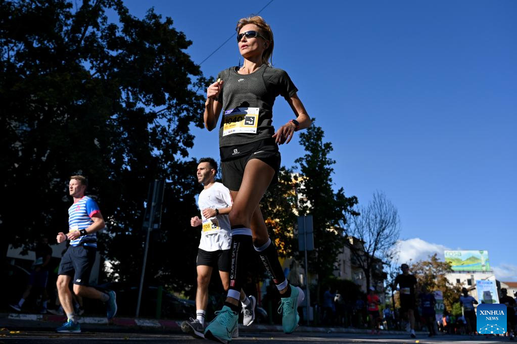 Participants run at the Skopje Marathon 2022 in Skopje, North Macedonia on Oct. 2, 2022. (Photo by Tomislav Georgiev/Xinhua)