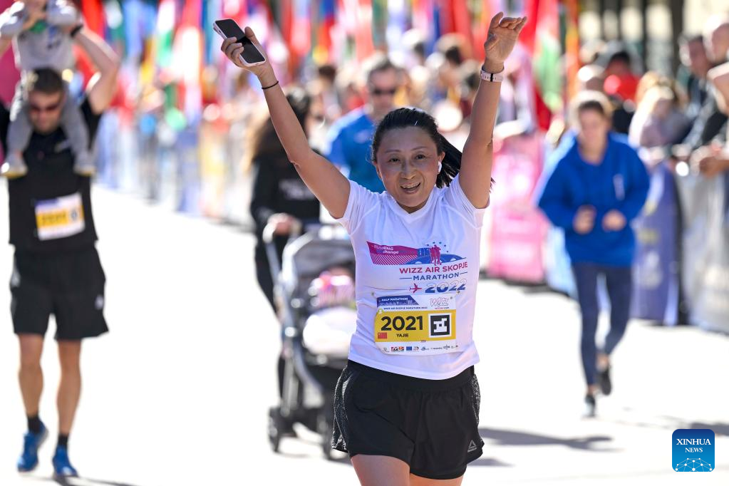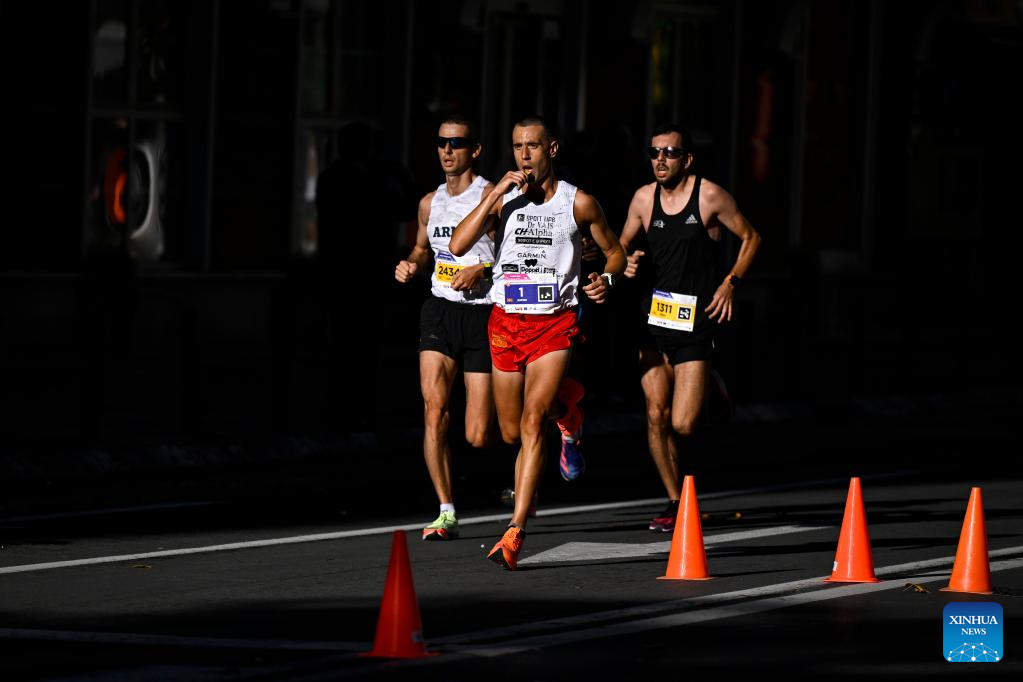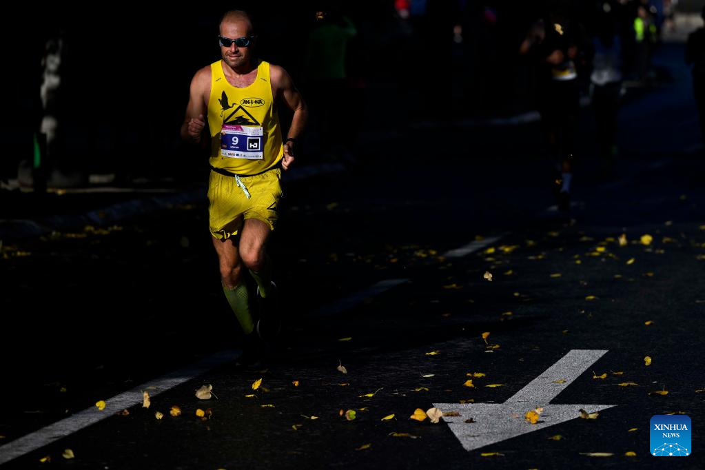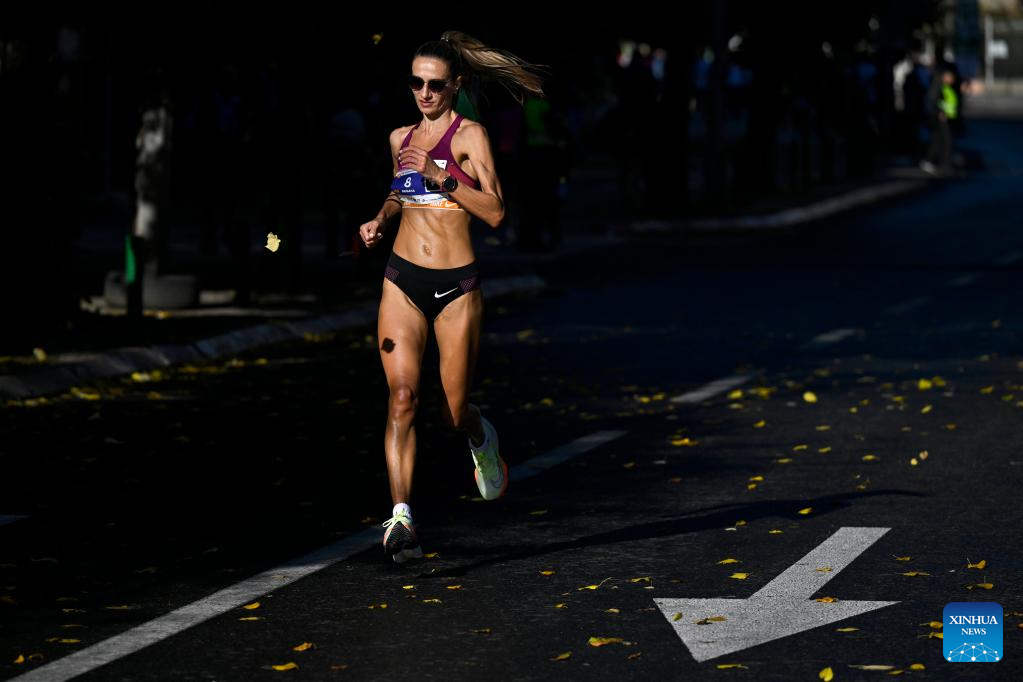 A participant runs at the Skopje Marathon 2022 in Skopje, North Macedonia on Oct. 2, 2022. (Photo by Tomislav Georgiev/Xinhua)
