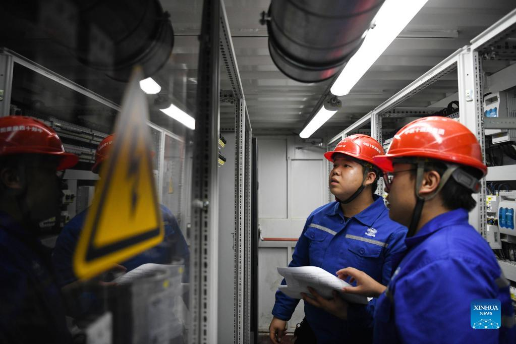 Staff members work at the construction site of a tunnel across the Yangtze River in Wuhu, east China's Anhui Province, Oct. 3, 2022. (Xinhua/Zhang Duan)