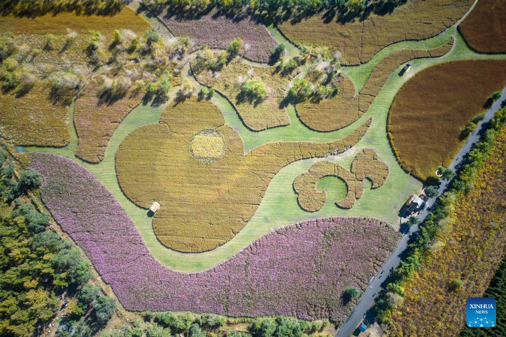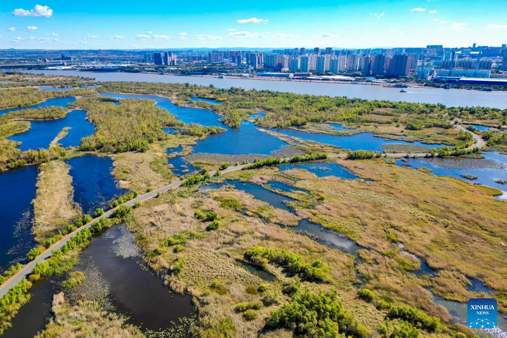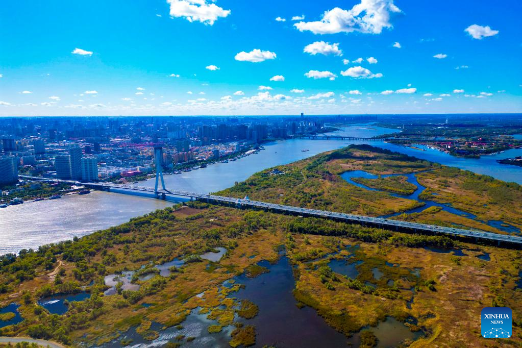 Aerial photo taken on Oct. 4, 2022 shows the scenery of a national wetland park in Harbin, northeast China's Heilongjiang Province. (Xinhua/Zhang Tao)